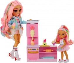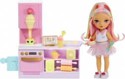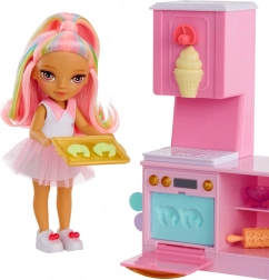 Doživite slatku avanturu sa šarmantnom lutkicom iz kolekcije RAINBOW HIGH LITTLES i njezinom stilskom slastičarnicom. Kuhinjica s pećnicom, kalupima i dozatorom za sladoled nudi mnoštvo načina za izradu šarenih poslastica i razvoj dječje kreativnosti i fine motorike. Zahvaljujući pet obojenih modelirajućih masa djeca mogu ispeći kroasane, ukrašavati cupcakese i “točiti” sladoled.