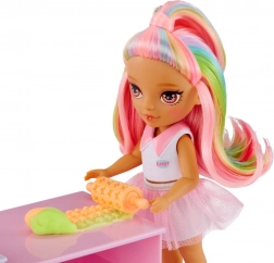 Otkrij čarobni svijet mašte s igraćim setom RAINBOW HIGH LITTLES – slatka lutkica cca 15 cm i njezina ružičasta slastičarnica puna dodataka. Djeca mogu peći i izrađivati šarene poslastice od modelirajućih masa, ukrašavati deserte i smišljati vlastite priče. Set sadrži 5 veselih obojenih masa, kuhinjicu s pećnicom i dodatke, pa ćete razigrano pečenje uživati iznova i iznova – a zahvaljujući kompaktnom dizajnu set možete lako ponijeti sa sobom.