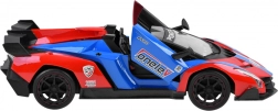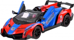 Sportski daljinski upravljani automobil u atraktivnoj crveno-plavo-crnoj kombinaciji idealan je izbor za male i veće vozače. Aerodinamična plastična karoserija, gumene gume i mogućnost podešavanja konvergencije kotača osiguravaju stabilnu vožnju i zabavu na duge sate.