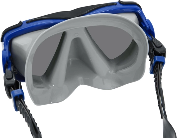 Maska s podesivom trakom i mekim silikonskim brtvama prilagođava se obliku lica i čvrsto stoji i pri duljem plivanju. Ergonomski silikonski usnik ugodan je za usta.