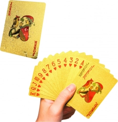 Zlatne plastične igraće karte donose eleganciju i stil u svaku kartašku igru. Idealne za poker, makao, belu ili tisuću, jamče kvalitetno iskustvo igre zahvaljujući svojoj izdržljivosti i dugom vijeku trajanja.