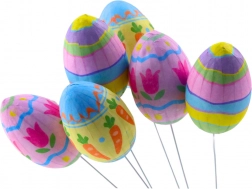 Jaja su opremljena žicama koje omogućuju jednostavno postavljanje u raznim dekoracijama, poput cvjetnih aranžmana ili vijenaca.