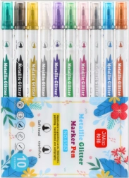 Osvijetlite svoje stvaralaštvo setom od 10 metalik dvostranih flomastera sa šljokicama. Nude sjajan metalni odsjaj, dva vrha (tanki i širi) te brzosušeću netoksičnu tintu za čiste linije bez razmazivanja. Odlični za papir, karton, plastiku i keramiku – za crtanje, kaligrafiju i dekoracije.