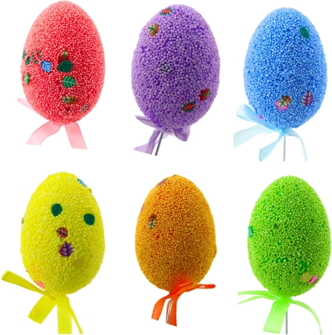 Zahvaljujući elastičnoj žici lako ih zabodete u cvijeće, trave, mahovinaste aranžmane, uskršnje košare i središnje dekoracije na stolu. Lagan materijal (stiropor) dobro drži oblik, boje su izražajne i prikladne za proljetno uređenje doma, ureda i vrtnih dekoracija.