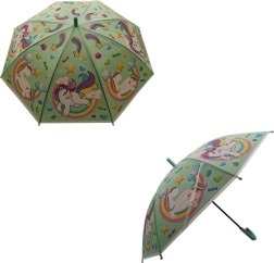 Sladak dječji kišobran s motivom jednoroga zaštitit će vašu djecu od kiše i ujedno razveseliti razigranim dizajnom. Zahvaljujući automatskom mehanizmu brzo se otvara, čvrsta čelična konstrukcija osigurava stabilnost, a plastična ručka udobno držanje i za male ruke.