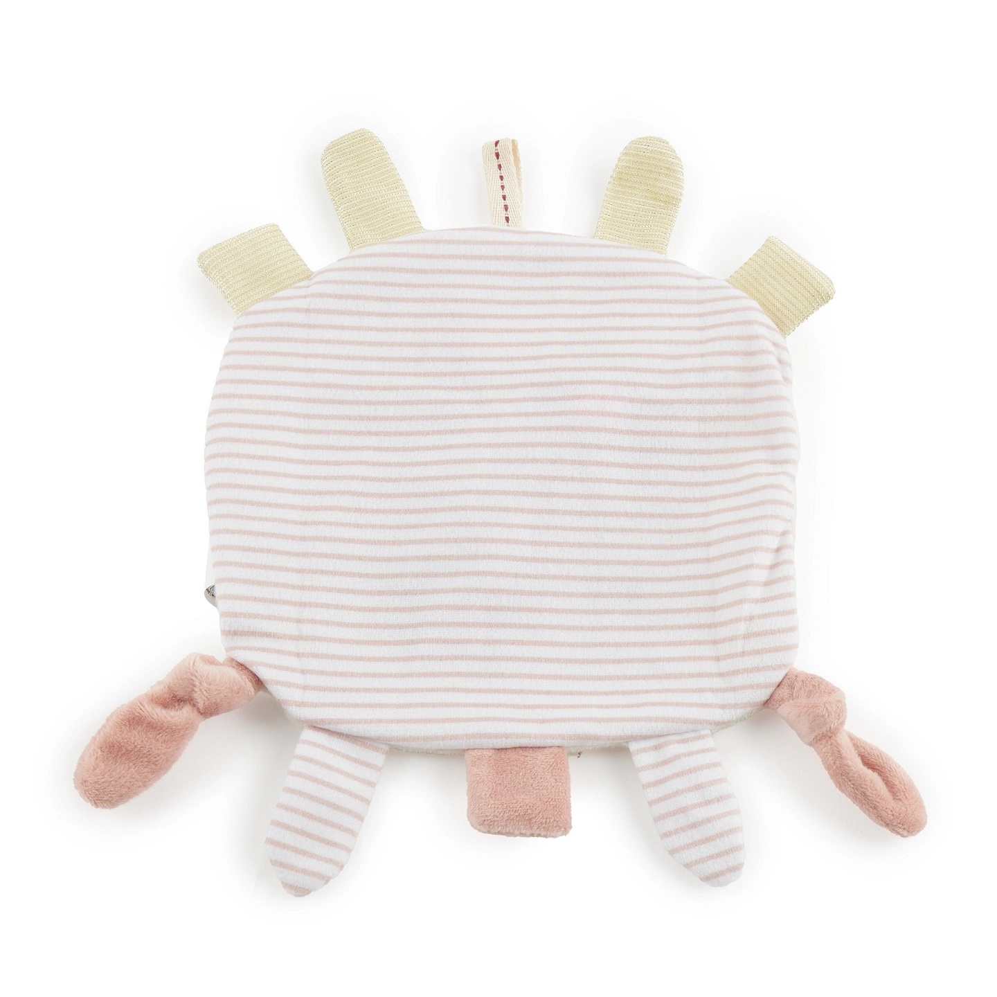 Mekana kvadratna mazilica s motivom jelenčića idealan je prvi prijatelj za bebu od rođenja. Zahvaljujući mekanom materijalu, različitim teksturama i šuškavoj foliji potiče osjetila, podržava istraživanje i stvara osjećaj sigurnosti pri uspavljivanju. Lako ju je uhvatiti i najmanjim ručicama, a razveselit će nježnim bojama i praktičnim jednostavnim održavanjem.