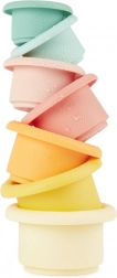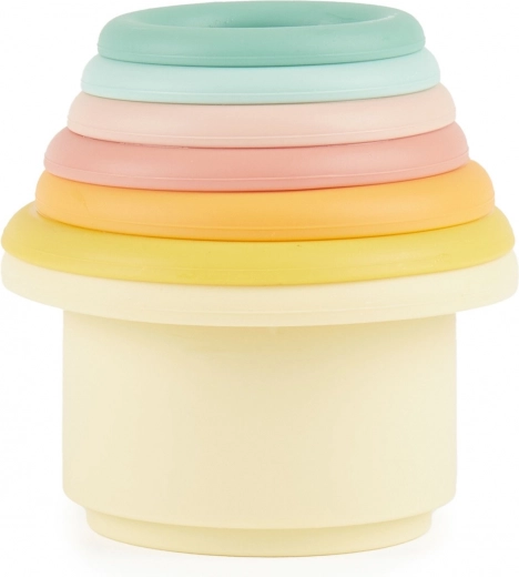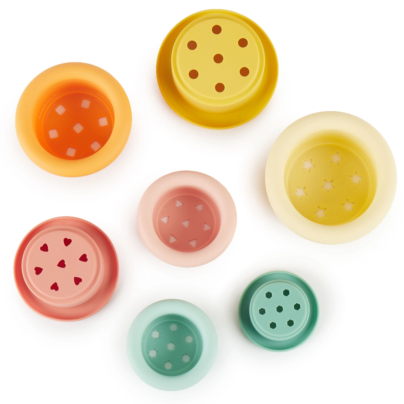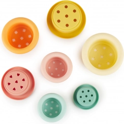 Sedmodijelni set stogivih čašica od 100% silikona. Ova je igračka dizajnirana za poticanje koordinacije i fine motorike djece. Izrađene od izdržljivog i sigurnog silikona, ove su čašice idealne za upotrebu u zatvorenom i na otvorenom. Osim toga, vrlo se lako održavaju – dovoljno ih je oprati vodom i blagim sapunom.