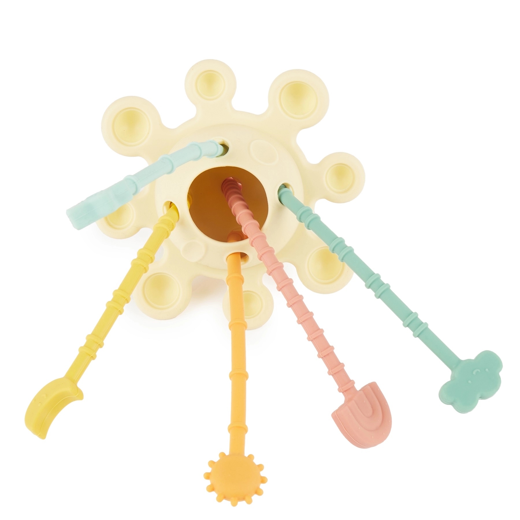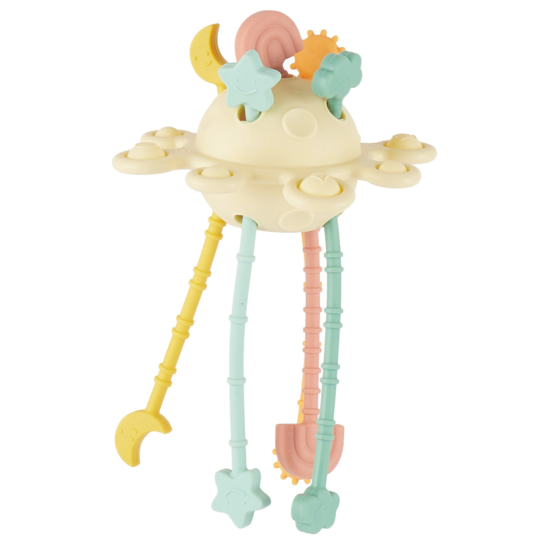 Ova silikonska motorička igračka dizajnirana je prema montessori principima i pomaže djeci prirodno razvijati vještine kroz igru. Izdržljive povlačne uzice mogu se vući naprijed-natrag, elementi za potiskivanje jačaju mišiće prstiju, a raznolike teksture stimuliraju osjet dodira i znatiželju.