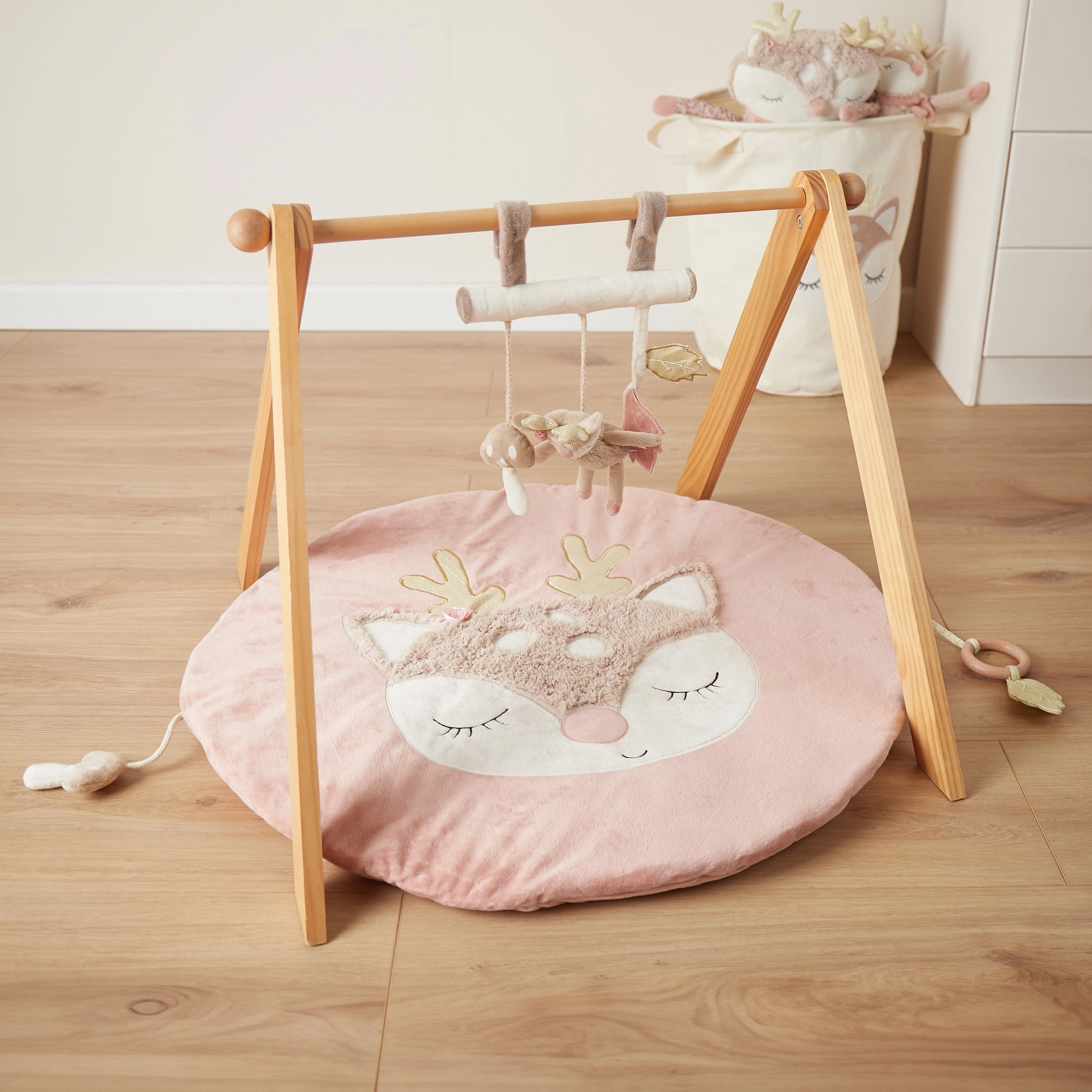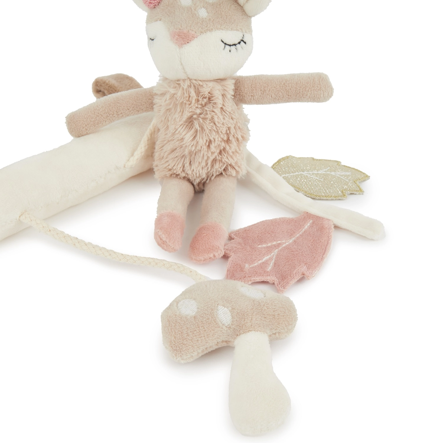 Promišljeni detalji potiču razvoj fine motorike i osjetila – razne teksture pozivaju na dodir, šuškavi listići i zveckajuće lanče razvijaju sluh, dok gljivica s blagim brujanjem bebu zaokupi i umiri. Jednostavno održavanje i kvalitetna izrada jamče dugotrajnost.