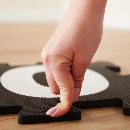 Crno-bijeli dizajn pristaje modernim interijerima, a podloga pomaže održati igraću zonu preglednom.