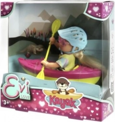 Ova preslatka lutka Evi Love spremna je zaploviti u svom šarenom kajaku. Zahvaljujući priloženim dodacima – kacigi, sunčanim naočalama i veslu – djeca mogu doživjeti sigurne i zabavne avanture na rijeci ili jezeru. Dio seta je i mala vidra koja igri dodaje više priča i emocija.