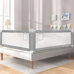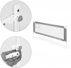 Praktična ograda za krevet širine 200 cm osigurava djeci siguran san i roditeljima mir. Ima univerzalnu montažu, podesivu visinu za različite madrace, preklopnu gornju letvicu za lakši pristup i izdržljivu mrežicu za bolju cirkulaciju zraka. Konstrukcija od čelika i čvrste tkanine, uz to praktičan džep za sitnice. Marka ECOTOYS.
