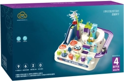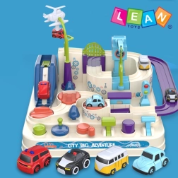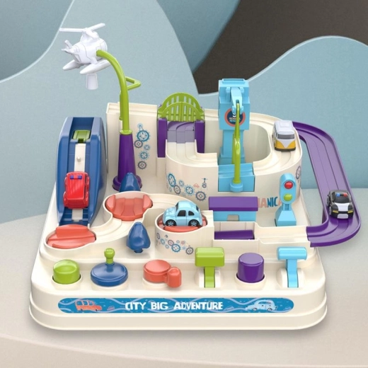 Set sadrži šarenu preprečnu stazu s pomno osmišljenim dizajnom koji osigurava maksimalnu zabavu i potiče dječju maštu. S četiri autića dijete može svladavati razne prepreke poput tobogana i mostova. Korištenje posebnih tipki i upravljačkih kotačića smještenih na ploči pridonosi razvoju logičkog razmišljanja i motorike.