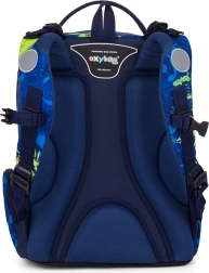 Stilski 3-dijelni školski set za male nogometaše: ruksak OXY GO, vrećica i pernica. Ruksak ima anatomski oblikovana, prozračna leđa, podesive naramenice s kukicama, čvrsto vodonepropusno dno i reflektirajuće elemente. Idealno za 1.–3. razred, volumen 22 l, masa 930 g.