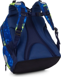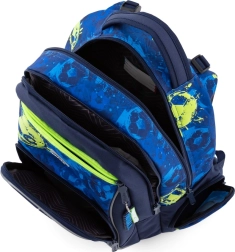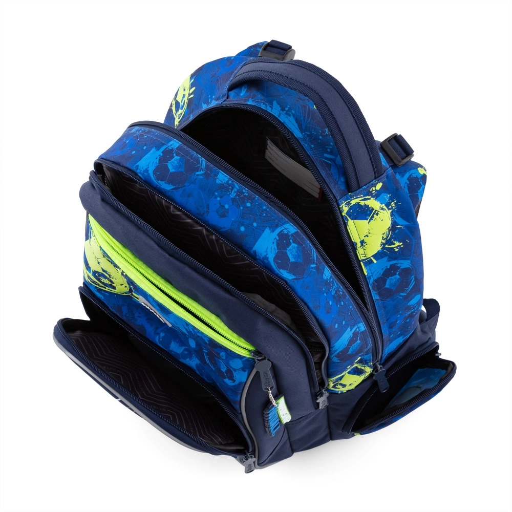 Školski ruksak OXY GO FOOTBALL spaja moderan dizajn i funkcionalnost. Zahvaljujući anatomski oblikovanim, prozračnim leđima te podstavljenim, podesivim naramenicama, udobno se nosi i pri punom opterećenju. Čvrsto, vodonepropusno dno štiti sadržaj od prljanja i vlage, a reflektirajući elementi povećavaju sigurnost na putu do škole.