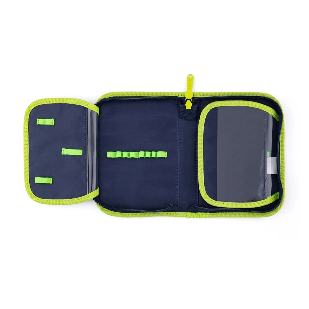 Praktična unutarnja organizacija olakšava slaganje udžbenika, bilježnica i kutija za užinu. Tu su i bočni džepovi – jedan na patentni zatvarač i drugi otvoreni za bocu – te pametne kukice za pričvršćivanje dugih krajeva naramenica. Set upotpunjuju vrećica za sportsku opremu sa zatezanjem na špaga i jednopodna pernica s dvjema preklopnim stranicama, elastičnim držačima i prozirnom folijom za raspored.