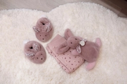 Ovaj očaravajući poklon set sadrži slatkog ružičastog plišanog zeku i mekane bootićice, koji su idealan poklon za svaku bebicu u dobi 0–6 mjeseci. Drži bebina stopala toplima i prati je u prvim mjesecima života.