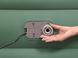 Madrac je opremljen ugrađenom električnom pumpom koja omogućuje napuhavanje za samo 3 minute. Po potrebi ga je moguće napuhati i ručnom pumpom, što je praktično za mjesta bez pristupa električnoj energiji.
