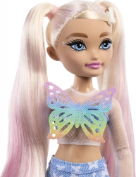 Lutka Barbie “Malibu” iz kolekcije Dream Besties donosi u igru svjež stil i radost kretanja. U outfitu s motivom leptira, sa štitnicima za koljena i svjetloplavim četverokotačnim rolama spremna je za super vožnju. Duga kosa u repićima s ružičastim ombre efektom poziva na češljanje i stiliziranje.