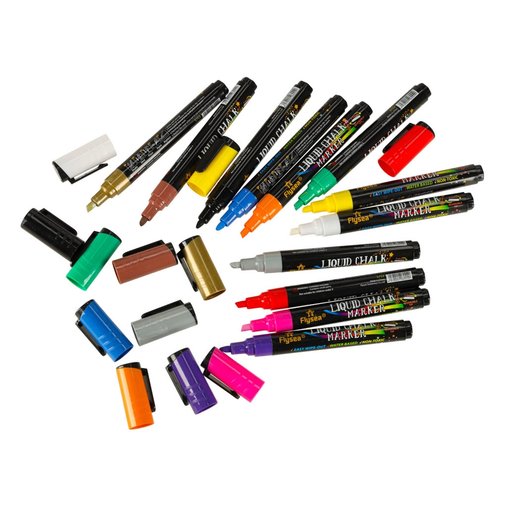 Dodajte boju svojim idejama uz naš set od 12 obojenih krednih flomastera! Ovaj set sadrži 12 živopisnih nijansi koje se ističu pri izradi natpisa, ilustracija i dekoracija. Idealan za ukrašavanje izloga, ogledala, ploča za suho pisanje, keramičkih šalica i drugih glatkih površina.