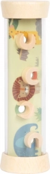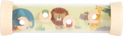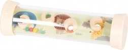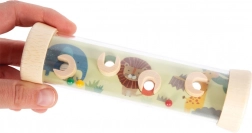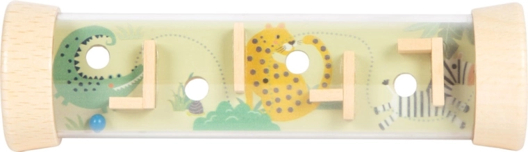 Ovaj obostrani kugličasti labirint spaja igru i senzorno iskustvo u jednoj robusnoj, prozirnoj cijevi. Djeca nastoje dovesti 4 šarene drvene kuglice u predviđene otvore, dok nježno zveckanje potiče slušnu stimulaciju. Ilustracije životinja poput krokodila, zebre, lava ili žirafe potiču maštu i prirodnu znatiželju.
