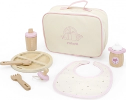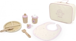 Set sadrži sve što malim njegovateljima treba: tanjurić, žličicu, vilicu, dudu, dvije bočice i mekani podbradak. Zahvaljujući sigurnoj izradi, igračka je prikladna za djecu od 3 godine i postat će omiljeni dodatak dječjoj kuhinjici i kutku za lutke.