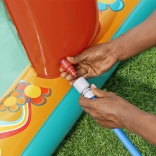 Šareni tobogan je za veću sigurnost pričvršćen za dno bazenčića kako se ne bi pomicao tijekom igre.