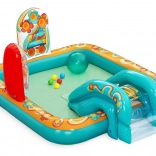 Uronite u svijet ljetne zabave s napuhujućim centrom za igru BESTWAY Retro Groove. Šareni bazenčić s toboganom, integriranim vodenim raspršivačem i igračkama za razvrstavanje loptica donosi djeci od 2 godine sigurnu i razigranu vodenu atrakciju. Jednostavno spajanje na vrtno crijevo, odvodni ventil za brzo ispuštanje i mogućnost igre i bez vode čine ovaj centar idealnim izborom za vrt i terasu.