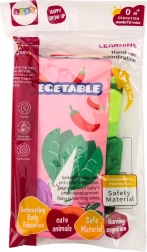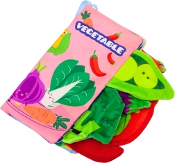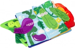 Mekana tekstilna knjižica za najmlađe razvija osjetila i finu motoriku te istovremeno uči prvim riječima. Šarene ilustracije povrća, šuškajuće stranice i pištavi elementi čine je zabavnom edukativnom igračkom za dom i putovanja. Na stranicama su nazivi povrća na engleskom jeziku, što potiče učenje kroz igru.