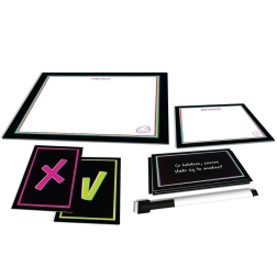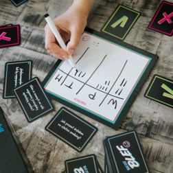 - 312 kartica s pitanjima, 24 kartice za glasovanje, tablica za zapisivanje odgovora, tablica za vođenje rezultata, suhi marker, upute