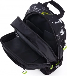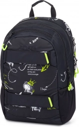 Ruksak OXY Sport Graffiti izvrstan je izbor za studente i odrasle. Ergonomski oblikovana leđa i podesive podstavljene naramenice osiguravaju udobno nošenje cijeli dan. Praktična prsna traka doprinosi stabilnosti. Dva glavna pretinca i manji prednji džepići s čvrstim patentnim zatvaračima pružaju dovoljno prostora za knjige i osobne stvari.
