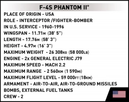 Legendarni F-4S Phantom II u tamnoj varijanti „Black Bunny” iz slavne ispitne eskadrile US Navy VX-4 vraća se kao precizan COBI konstruktorski set. Model u mjerilu 1:48 oduševljava realističnim oblicima, detaljnim otiscima i funkcionalnim elementima, zahvaljujući kojima je odličan i za igru i za izlaganje.