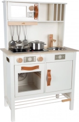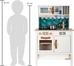 Ova moderna drvena kuhinjica SMALL FOOT Tasty ističe se robusnom konstrukcijom, čistim skandinavskim izgledom i promišljenim funkcijama za realističnu igru kuhanja. Sastavni dio su metalni sudoper, okretne tipke s mehaničkim zvukom, elektronička ploča za kuhanje sa svjetlosnim i zvučnim efektima te praktična izvlačna napa sa svjetlosnim simbolom.