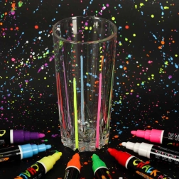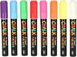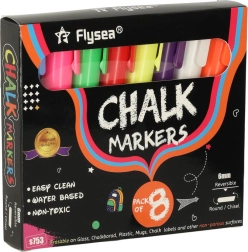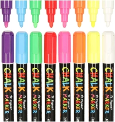 Svaki marker ima dvosmjerni vrh (okrugli i kosi), koji se može okretati po potrebi, omogućujući preciznost i raznovrsnost stvorenih linija. Vodeno-kredni tinta ne ostavlja tragove; za uklanjanje je dovoljna vlažna krpa – bez mrlja i ostataka. Također ne prlja ruke i ne stvara prašinu kao tradicionalna kreda.
