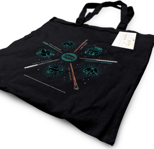 Pokažite svoju ljubav prema svijetu Harryja Pottera ovom praktičnom platnenom torbom s motivom štapića. Zahvaljujući čvrstom materijalu pogodna je za kupovinu, školu i posao, a lako je možete složiti u torbicu ili ruksak.