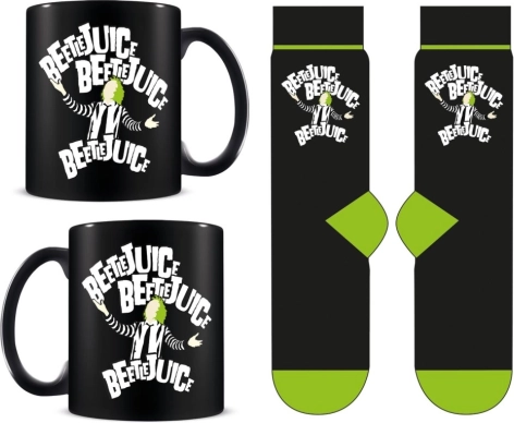 Stilizan muški poklon set s motivom BEETLEJUICE razveselit će svakog obožavatelja. Sadrži keramičku šalicu 315 ml prikladnu za perilicu posuđa i mikrovalnu pećnicu te udobne čarape veličine 41–45 od ugodnog materijala.