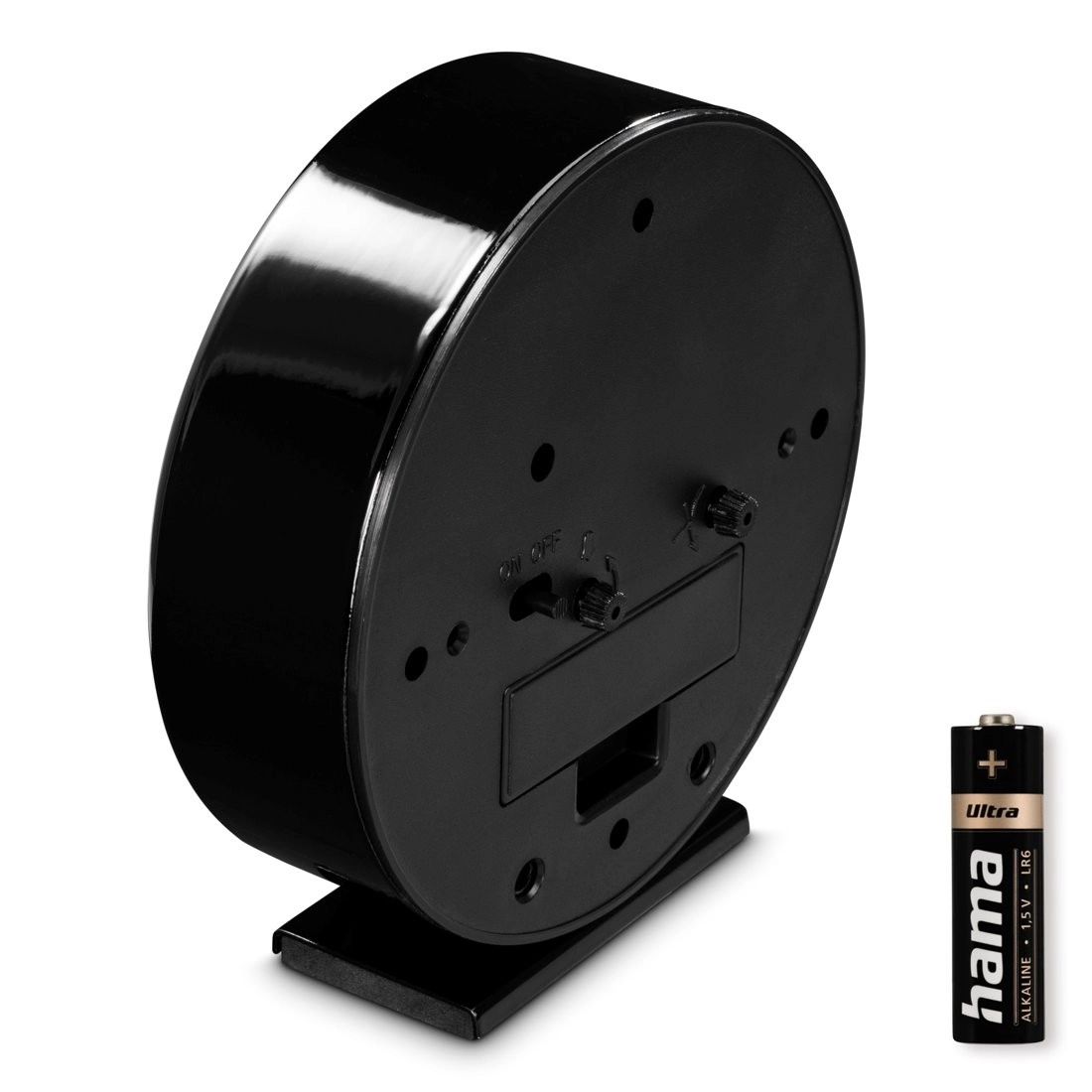 Hama Skye je stilska analogna budilica s crnim, lako čitljivim brojčanikom i velikim bijelim brojkama, koja se odlično uklapa u moderne i klasične interijere. Tihi mehanizam s neprekidnim pomakom sekundne kazaljke eliminira ometajuće kucanje i osigurava neometan san.