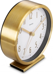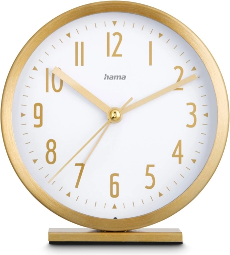Probudi se uvijek na vrijeme i sa stilom. Ova elegantna zlatna budilica s analognim brojčanikom i velikim zlatnim arapskim brojkama nudi tih rad s glatkom sekundnom kazaljkom, jednostavno postavljanje jednog alarma i kompaktne dimenzije 11,3 cm koje pristaju na svaki noćni ormarić.