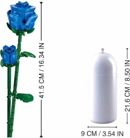 Ovaj dizajnerski građevni set pretvorit će vašu policu ili stol u procvjetali vrt. Plave ruže u vazi odlikuju se realističnim oblicima, čvrstom konstrukcijom i ugodnom visinom od 41,5 cm, pa odlično izgledaju samostalno ili u kombinaciji s drugim cvijećem iz serije.
