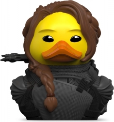 Ova gumena patkica izrađena je s detaljnom preciznošću, hvatajući ikonični izgled junakinje Katniss Everdeen sa smeđim pletenicama i crnim kostimom. Patkica je veličine približno 9 cm i napravljena je od kvalitetnog PVC materijala, što osigurava njezinu izdržljivost i dugu trajnost.