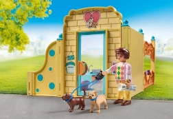 PLAYMOBIL kuća za štence donosi djeci svijet prepun nježne brige i zabave. Dopustite malim uzgajivačima da otkriju svakodnevnu rutinu sa štencima: okupaju ih u kutku za pranje, nahrane iz zdjelica, izvagaju i smjeste u mekane ležaje. Zahvaljujući dvostrukoj uzici kreću u vesele šetnje s dva psa odjednom.