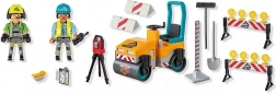 Izgradi vlastito gradilište s PLAYMOBIL ACTION HEROES! Ovaj građevinski set donosi cestovni valjak s rotirajućim bubnjevima, 2 figure građevinara i bogatu opremu za realistično igranje. Bljeskajuće cestovne barijere, podesivo vozačevo sjedalo i detaljni alati potiču motoriku, kreativnost i maštu djece u dobi 4–10 godina.