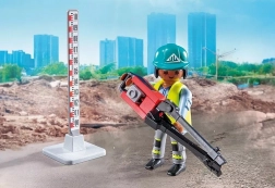 U kompletu su 2 građevinara s kacigama, voki-toki, metla, lopata, mjerni stativ i drugi alati za neograničene scenarije i razvoj kreativnosti.