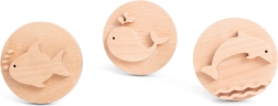 Ovi drveni žigovi omogućit će vam utisnuti dupina, ribu i kita u pijesak. Idealna zabava za djecu na pješčaniku ili plaži. Igra podržava motoriku, kreativnost i igru na otvorenom.