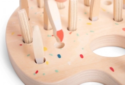 Zahvaljujući stavljanju i vađenju drvenih četkica djeca razvijaju finu motoriku. Ergonomski dizajn olakšava rukovanje.