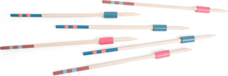 Igra sadrži ukupno 6 drvenih koplja (tj. dva seta), uže i klinove za označavanje startne i ciljne linije, tako da imate sve što vam treba za trenutačni početak natjecanja.