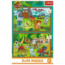 Doživite dvostruku zabavu slaganja uz puzzle 2x24 dijelova brenda Trefl! Svako pakiranje sadrži dva slaganja po 24 dijela s motivima omiljenih likova iz svijeta Jurassic World Explorers.