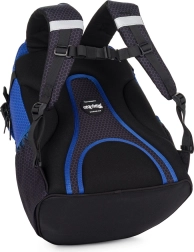 Promišljena organizacija s dva prostrana pretinca prima sve školske potrepštine. Bočni elastični džepovi idealni su za bocu s pićem, a prednji džepići sigurno čuvaju manju užinu ili sitnice. Čvrsto dno osigurava stabilnost samostojeće torbe, a reflektirajući elementi povećavaju vidljivost djeteta u sumrak i mraku.