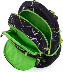Unutra se nalaze 2 prostrana pretinca za udžbenike i bilježnice, bočni elastični džepovi za bocu s pićem i prednji džep za sitnice ili užinu. Reflektirajući elementi povećavaju vidljivost i sigurnost pri hodu u školu i iz škole. S volumenom od 28 l, težinom 960 g i nosivošću 8 kg pouzdan je suputnik za svaki dan.