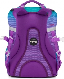 Školska torba Oxy Ombre Blue Pink oduševljava modernim ombre dizajnom u kombinaciji tirkizne i ljubičaste s heksagonalnim uzorkom. Zahvaljujući anatomski oblikovanom leđnom panelu te podstavljenim, podesivim naramenicama nudi cjelodnevnu udobnost i pri punom opterećenju. Čvrsto dno omogućuje stabilno stajanje i štiti sadržaj.